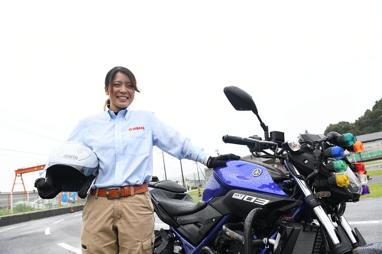 こうしてヤマハテクニカルセンターの職員として採用された島津さんは、昨年12月に念願の普通二輪指導資格を取得。今年2月からは教習指導員として第一線で活躍しています。