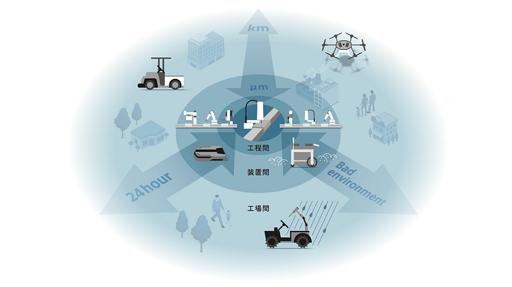搬送の効率化には、距離や時間、そして搬送空間の環境など、さまざまな要素が介在します。工程間、装置間、そして工場間をスムーズに結ぶためには、ロボティクスとモビリティの技術の融合が欠かせません。