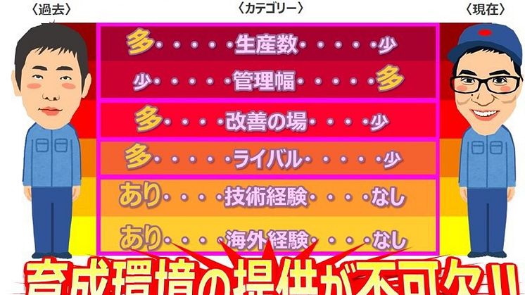 対して右側は、現在の若手従業員が置かれた環境です。