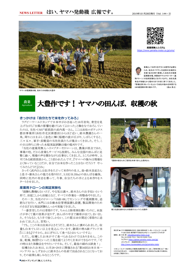 「当社の産業用無人ヘリコプターやドローンは、農業が原点であり、事業の柱。だから営業もサービスも技術も、みんな全国の田んぼに足繁く通い、現場の声を聞きながら仕事をしてきました。ところが昨年、上司である統括部長から、こう言われたんです。『ヤマハの強みは現場をよく知っていることだが、自分でお米を作ったことはないだろう? やってみたらどうだ』とね」