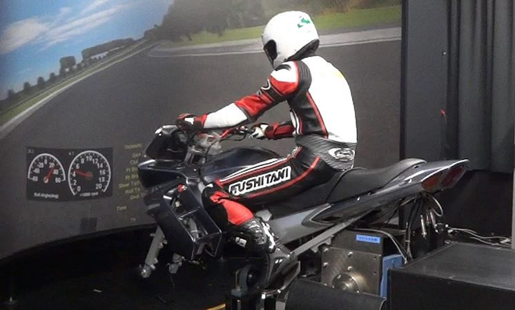 「当社では、二輪車の操縦安定性の研究に以前から乗車型のシミュレーターを用いてきました」と話すのは、共同研究グループの一人、基盤技術研究部の三木将行さん。「仮想世界に構築したさまざまな道路環境を、さまざまな製品で走ることができますから、ライダーと車両の関係を明らかにしていく研究には非常に重要な設備です。当社独自の開発思想『人機官能』をより深めていくためにも、また『ハンドリングのヤマハ』と高く評価いただいている強みの背景にもつながっています」