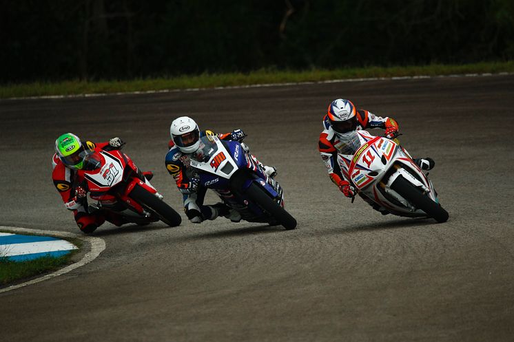残った#76 Itoは、ヤマハライダーの転倒も手伝って4番手に浮上すると、前方から約2秒のギャプをコンマ数秒ずつ削り取り、7周目を終えた直後には、3番手のテールをつかまえる。そして8周目に勝負、なんなくライバルを抜き去った。しかし、表彰台の権利を得たその直後のコーナーで減速しきれずにコースアウト。まさに一瞬でその権利を失うこととなった。