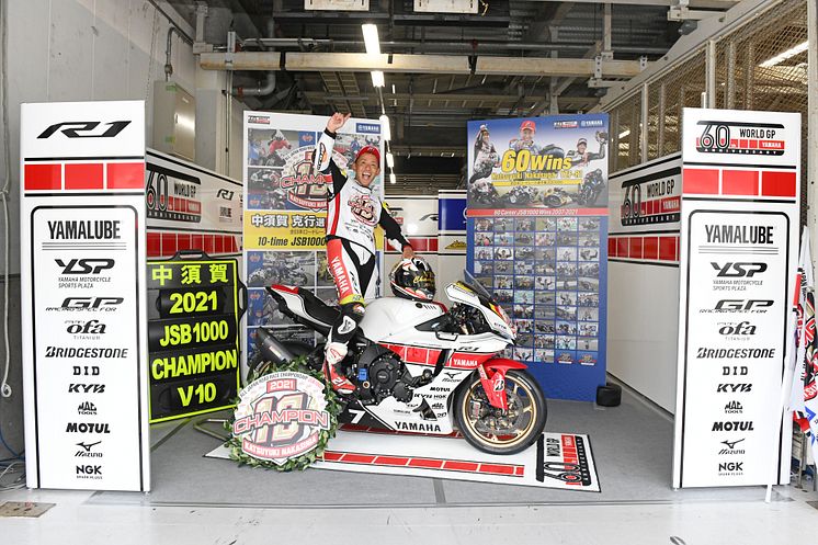 「毎年チャンピオンを獲得したとしても10年かかることを考えれば、本当に誇れる記録を作ることができたと思います。また、ヤマハトップチームに加わったのが2006年で、現在に至るまで常にトップを走ることができたことが本当に嬉しいし、ヤマハには本当に感謝しています。長く国内を走ってきましたが、国内で戦う限りはここで必要とされる存在になりたいと考えて戦ってきました。今回、10度目のチャンピオンを獲れたことは、今後のレース活動に大きな自信になりました。またJSB1000で60勝目ですが、毎レースで優勝を目指して頑張ってきて、その一つ一つの積み重ねがチャンピオンへとつながりましたが、優勝回数もまた誇りでもあり、常にいいマシンを提供し続けてくれたヤマハ、そしてこのYZF-R1を戦闘力の高いレース仕様へと造り上げてくれたスタッフ、そして長きにわたって応援してくれたファンの皆さんに感謝しています。ありがとうございました」