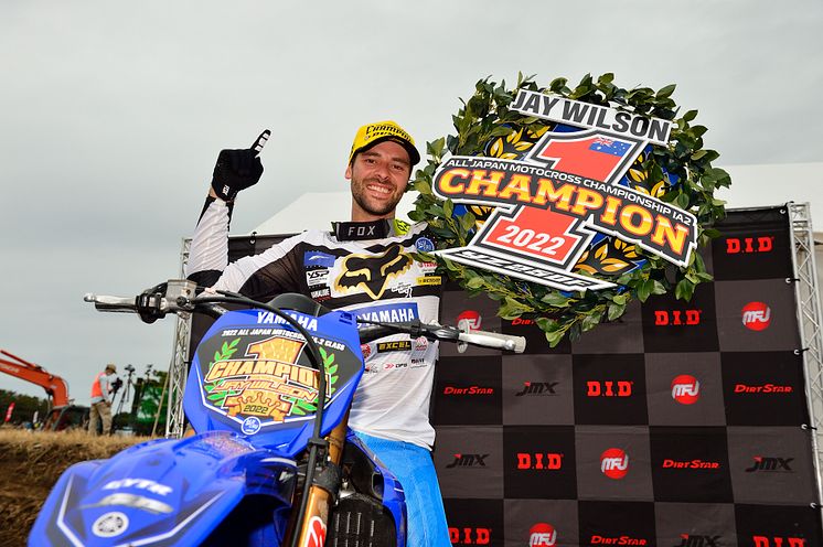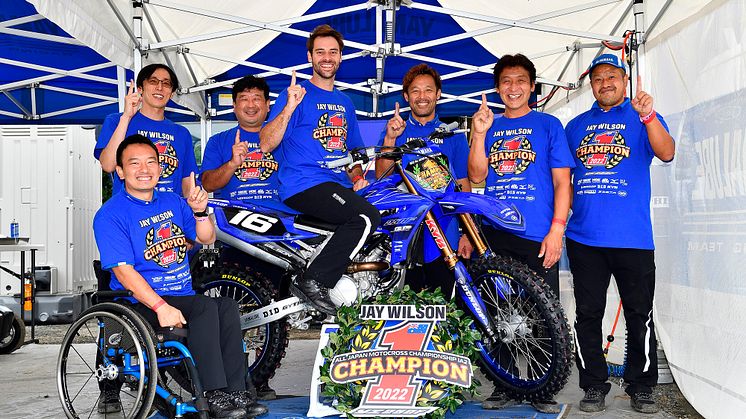 2022年10月9日(日)、熊本県のHSR九州で行われた全日本モトクロス選手権第5戦・九州大会で、「YAMAHA FACTORY RACING TEAM」から「YZ250F」でIA2に参戦するジェイ・ウィルソン選手が両ヒートで優勝し、開幕から負けなしの11連勝でチャンピオンを獲得しました。ヤマハ発動機株式会社としては、2017年の渡辺祐介選手以来、5年ぶりとなるIA2のチャンピオン獲得となります。
