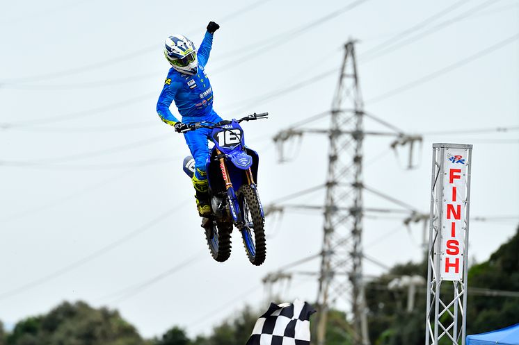 2022年から「YAMAHA FACTORY RACING TEAM」に加入したウィルソン選手は、スタンダードの「YZ250F」を駆り、開幕戦のトリプルヒートで3連勝を達成すると、第2戦関東大会のヒート1では複数回の転倒を喫しながらの逆転勝利など連勝記録を伸ばし、4戦を終えて9連勝。この時点でランキング2位の浅井亮太選手(ヤマハ)に123ポイント差をつけており、第5戦の両ヒートで優勝すれば、ライバルの結果に関係なくチャンピオンが決定する状況でした。
