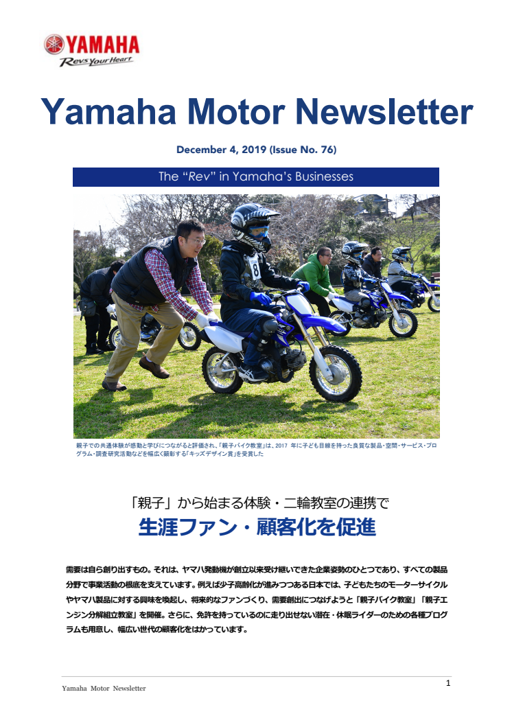 生涯ファン・顧客化を促進 Yamaha Motor Newsletter (December 4, 2019 No. 76)