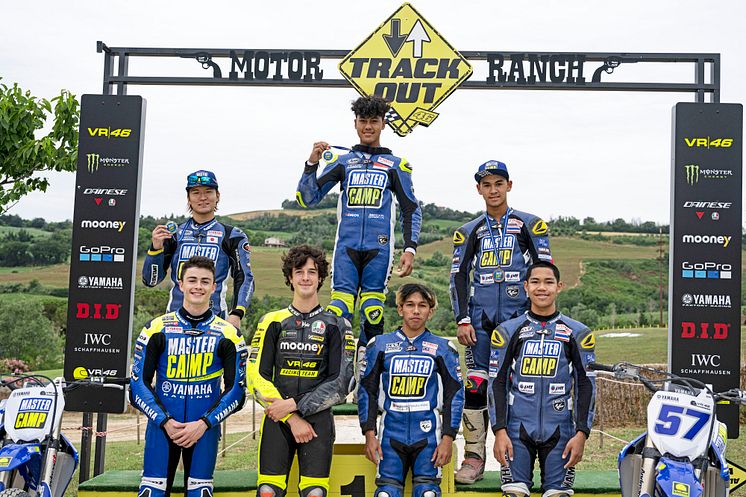 3日目は悪天候の影響もあり比較的ゆったりとしたスケジュールでしたが、4日目は再び全力のチャレンジが待っていました。フラットトラックではインストラクターのM・ベリがヴィエッティ選手をコーチとして招待していましたが、もうひとり、Yamaha VR46 Master Camp Teamのゴンザレス選手がMotor Ranchをサプライズ訪問し、5人と一緒にコースを走行しました。5人は明確な指導を受けながら時間をフルに使い切り、そのあとコース全体とアメリカン・コースでスーパーポールと決勝レースに出場。アルディー・スティア・マヒンドラ選手が前回に続き総合優勝し、阿部真生騎選手が2位、ウォラポット・トンドンムァン選手が3位となりました。