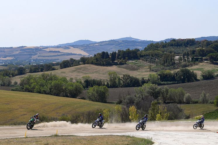 主な内容は、YZ250F によるVR46モーターランチのフラットトラック走行、同MXコースでYZ125を使ったソフトクロス。またポンポーサ・サーキットでYZF-R3を、スーパーモト・ジーパーズ・パークでYZ85を走らせる予定です。VR46 Riders Academyの先輩ライダーらから個人指導を受ける機会も用意しています。