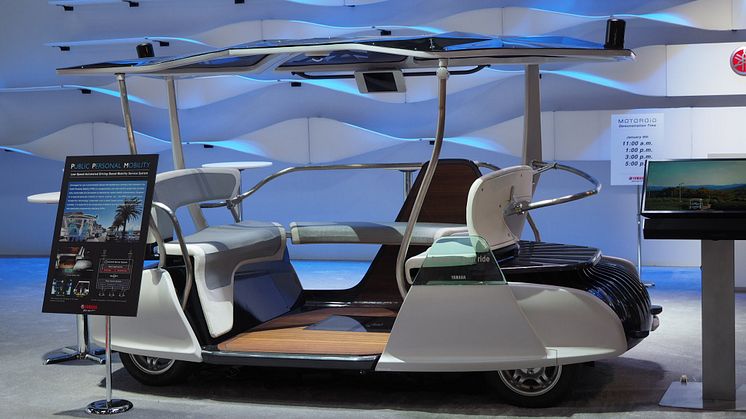とある観光地の街角。私はスマートフォンで「Yamaha Public Personal Mobility」アプリを操作し、呼び出しボタンにタッチした。しばらく待っていると、4〜5人乗りの無人カートがやってきて、私たちの前で止まった。家族を促して乗り込み、シート脇に設置されたタブレット端末で目的地を指示する。その後はすべてクルマにおまかせだ。趣きのある街並みをゆっくり眺めながら、観光ガイドの音声に耳を傾け、写真や動画を撮ったりおしゃべりしているうちに、ほどなくクルマは予約したレストランに着いた……。