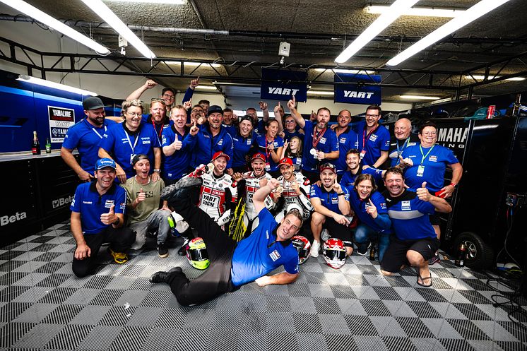 「なんというクレイジーなレースでしょう! チームの一員になって2年経ちましたが、これまでもあと一歩と迫りながらバッドラックに見舞われてきました。今年はついに、すべての惑星が一直線に並ぶように条件が整い、世界チャンピオンになることができました。とは言え、選手たちにとっては非常にタフなレースで、スタートで1ラップのリードを築いたあと、そのすべてを失ってしまったときには、今年もまただめなのかと思わざるを得ませんでした。しかしチームは見事なもので、決してあきらめませんでした。チームメイトたちは本当に素晴らしかったと思います。私は決勝を走ることはありませんでしたが、チームは大きなファミリーのような感じで、マシンのセットアップやパーツテストなどを通じて彼らを助けることができてとてもうれしいです。YARTチームとヤマハ・ファミリーの一員になることができて最高の気分です。この瞬間をエンジョイします」