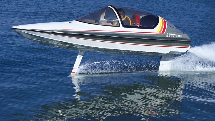 見るからに楽しげなこの乗り物の名は「OU-32」。ヤマハのボート事業の立ち上げ(1960年)からボートの開発・設計に関わり続けた故・堀内浩太郎氏をリーダーとする「堀内研究室」で試作され、1988年の「東京国際ボートショー」に“夢のボート”として出展した水中翼船です。