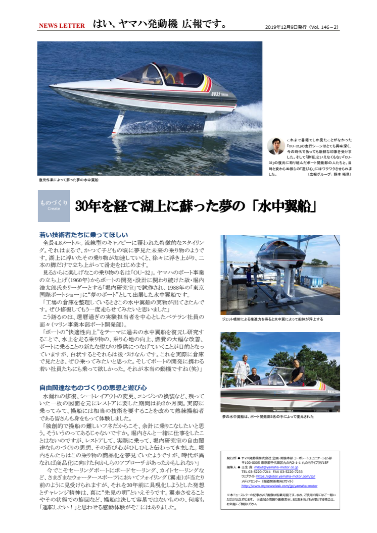 夢の水中翼船は、ボート開発部5名の手によって復元された