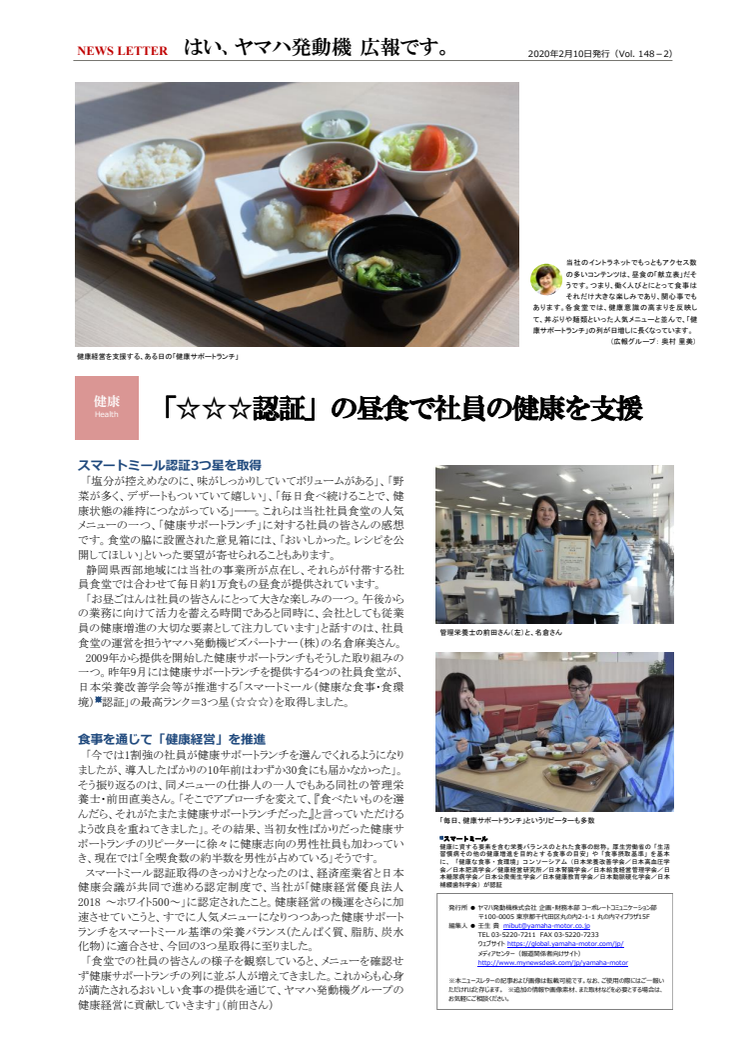 【ニュースレター】「☆☆☆認証」の昼食で社員の健康を支援