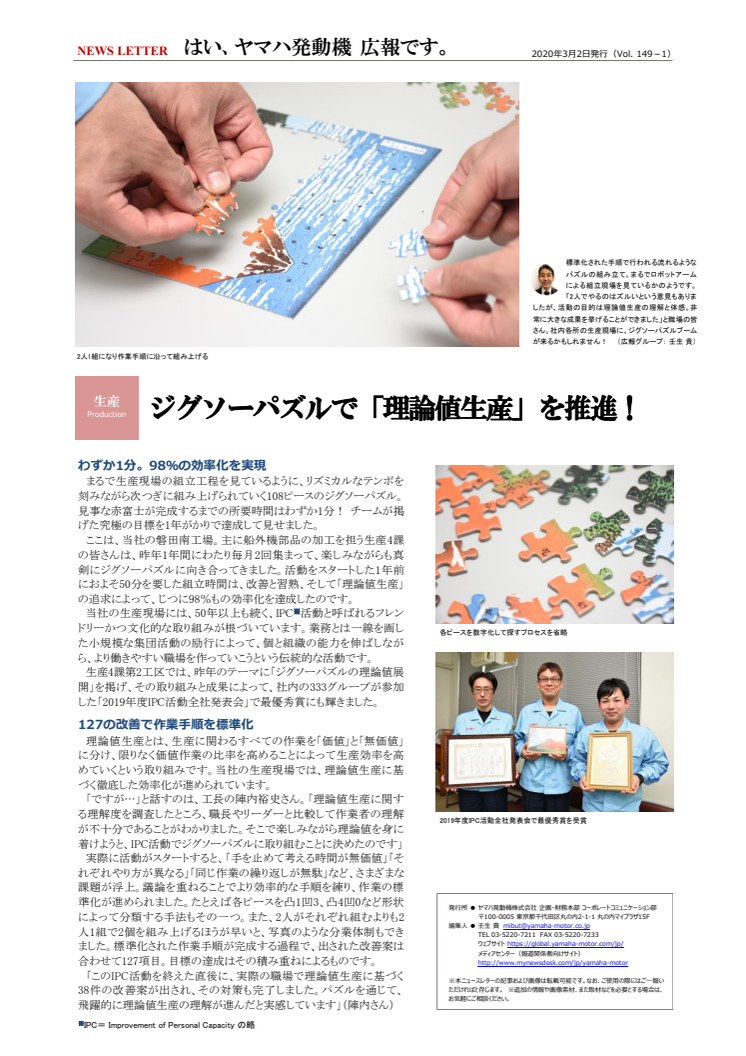 【ニュースレター】ジグソーパズルで「理論値生産」を推進!