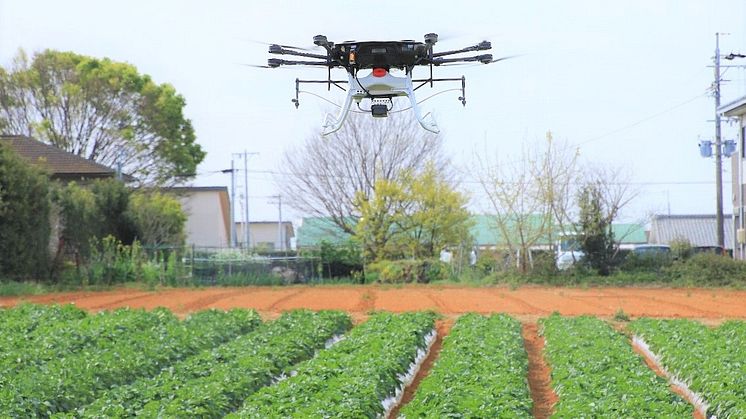 浜松市の複数のばれいしょ畑で始まったドローンによる実証散布