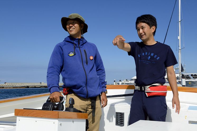 「2011年から開発してきましたが、特にリムドライブの防水性などに腐心してきました。小樽でトラブルなく運航していると聞いて嬉しく思います」と語るのは、「ハルモ」の開発に携わってきた当社マリン企画統括部・前島将樹さん。