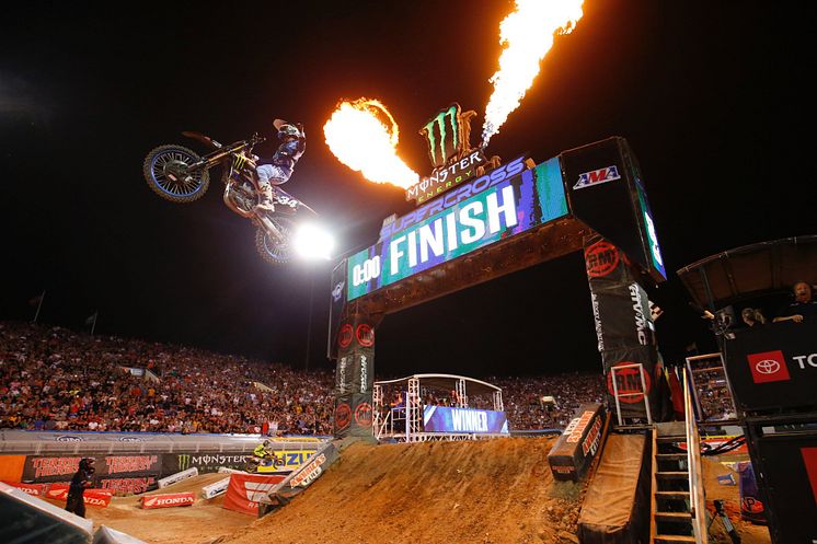なお最高峰の450SXでは、「Monster Energy/Yamaha Factory Racing Team」のジャスティン・バーシア選手がランキング13位、プレシンジャー選手がランキング16位。250SXウエストでは、コルト・ニコルズ選手がランキング3位、250SXウエストではジャスティン・クーパー選手がランキング2位を獲得しています。