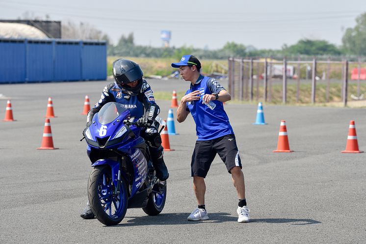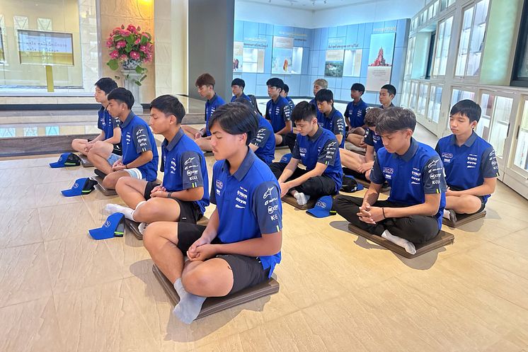 トレーニングでは、ARRCでも活躍した伊藤勇樹選手やデチャ・クライサート氏などのアドバイザーの指導のもと、各種ブレーキング、コーナリングなどをトレーニング。さらにスポーツ科学の視点から、アスリートに必要な食事や栄養、レーシングギアやタイヤなどの製品情報を学びました。このほか、プロサッカーチーム「ブリラム・ユナイテッド」の施設やユースアカデミースクール、ヤマハ発動機のディーラーを見学。仏教寺院での瞑想などの経験を通じて英気を養い、レースウィークを迎えました。