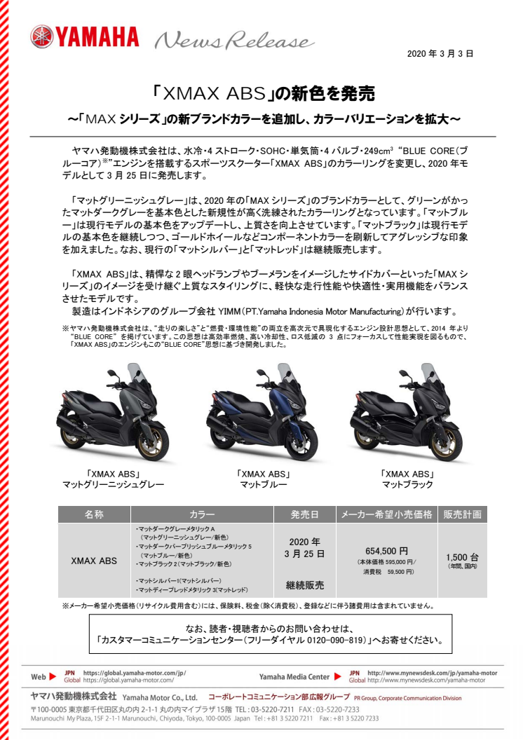 「XMAX ABS」の新色を発売 〜「MAXシリーズ」の新ブランドカラーを追加し、カラーバリエーションを拡大〜