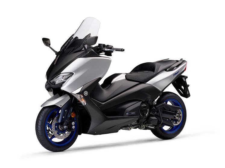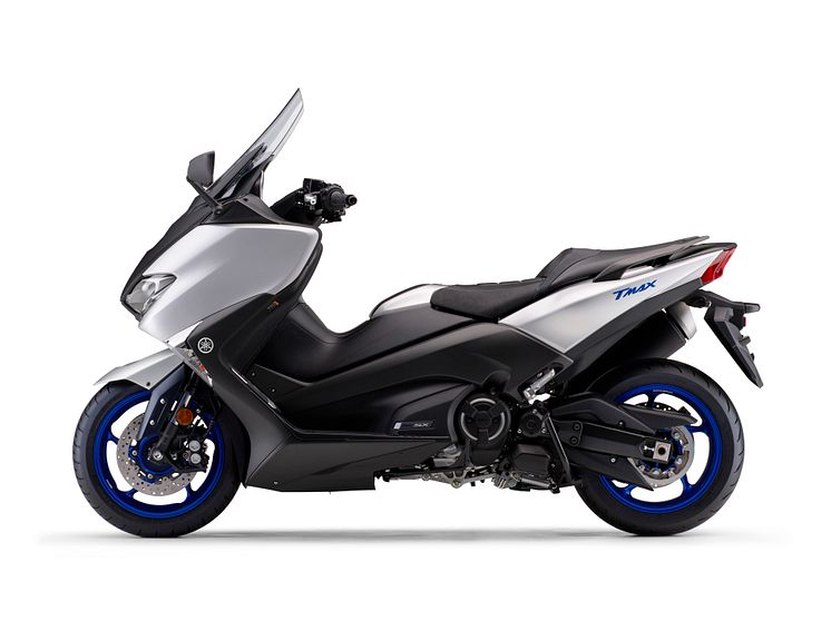 スタイリングはTMAXのアイコンとなるブーメラン形状の折込など、そのDNAを受け継ぎながら、エクステリアでは、精悍で引き締まったフロント周りと40mm伸びたリアアームの存在感を強調することによって軽快感のあるスポーティなプロポーションを実現しました。インテリアでは、塗装部品を増やして新規性を演出、レッグシールド左右のリッドには職人手作りの成形型によるテクスチャーラインを入れるなど高級セダンのようなイメージを醸し出すエレガントな印象を実現しました。カラーリングでは、金属感を強調しエレガントな佇まいを感じさせる“マットブルー”を「DX」に設定、随所にヤマハレーシングスピリットを感じさせるブルーを配色しスポーティ感を強調した“マットシルバー”を「SX」に採用。“ダークグレー”を両グレードに設定しました。