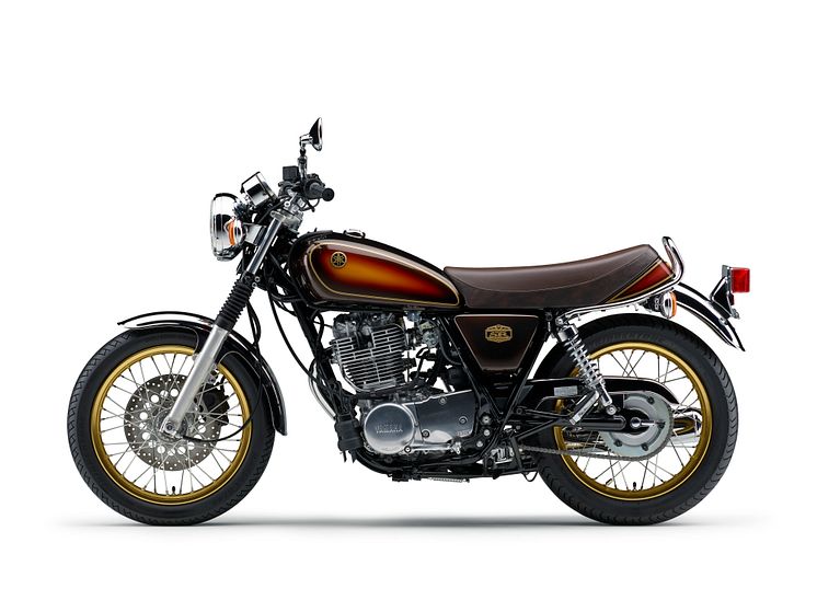 「SR400 40th Anniversary Edition」は、「ベリーダークオレンジメタリック1(ブラウン)」をベースに、職人の手作業によるサンバースト塗装 ※を施したフューエルタンクや真鍮音叉エンブレム、サイドカバーの電鋳SRエンブレムなど、素材から塗装まで所有感を満たす装飾にこだわり、SRの歴史や世界観が凝縮されたモデルです。