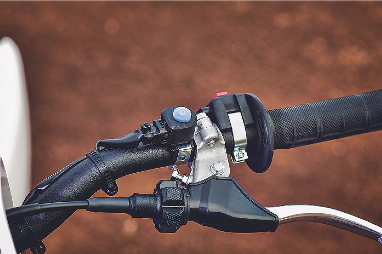 左ハンドルに、燃料噴射/点火時期のマッピングを切り替える「モードスイッチ」を新設しました。あらかじめ「パワーチューナー」※でマップを2種類登録しておけば、走行中でもレース状況やコース環境の変化に応じて自由に、すばやくエンジン特性の変更が可能です。