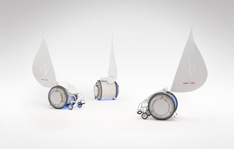 「&Y01」は、波間を思いのままに駆け抜ける白ヨットをイメージして、ヤマハ発動機とヤマハが共同で開発したデザインコンセプトモデルで、様々なイベントやパフォーマンスで使用されています。軽く滑らかに移動するヤマハ発動機の電動アシスト車いす「JWスウィング」に、ヨットの帆や音符のはたをイメージした薄く、軽く、柔軟なヤマハのスピーカー「TLFスピーカー」や車体両側の薄型パーカッションが一つになり、楽器に乗るという新体験を生み出します。搭乗者は自然とパフォーマーとなり、音や音楽を鳴らしながら移動することで周囲との一体感が生まれます。