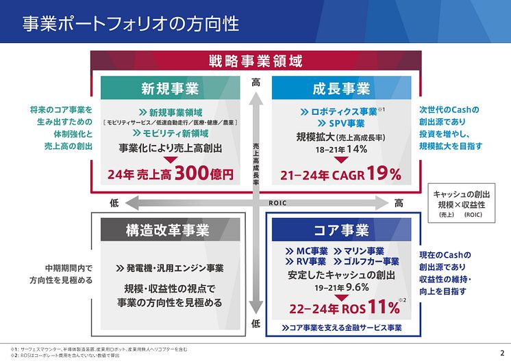 ヤマハ発動機株式会社は、このたび、2022年から2024年までの3ヵ年における新中期経営計画を策定しました。