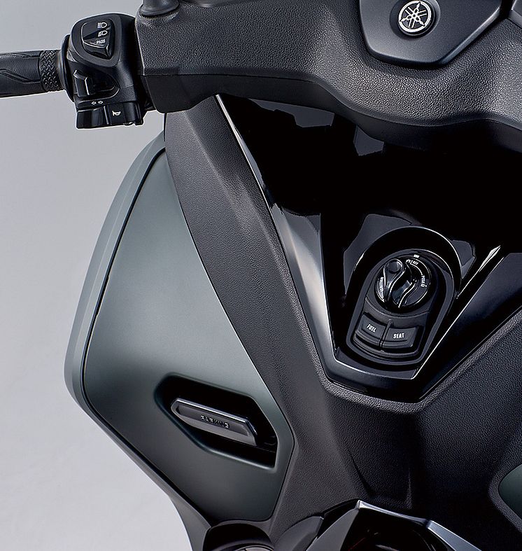 “Y” がモチーフの「TRICITYシリーズ」のブランドアイコンに、エアーマネージメント機能を加えました。またLMW機構やスタンディングアシストを取り込んだボリュームを活かし、TRICITYシリーズの上位機種にふさわしい立体感を表現しました。
