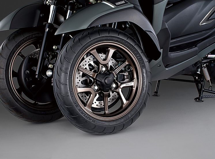 3輪のLMWに対応したABS(アンチロックブレーキシステム)とUBS(ユニファイドブレーキシステム)を採用。ABSは3つのブレーキ系統をそれぞれ最適に制御し車輪のロックを低減、UBSは、リアブレーキ操作でフロントブレーキにもバランスよく効力を発生させ制動時の車体挙動に穏やかさをもたらします。