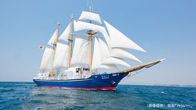 ● 使用する船:帆船「みらいへ」 総トン数:230トン(国内)、全長・幅:52.16m×8.60m