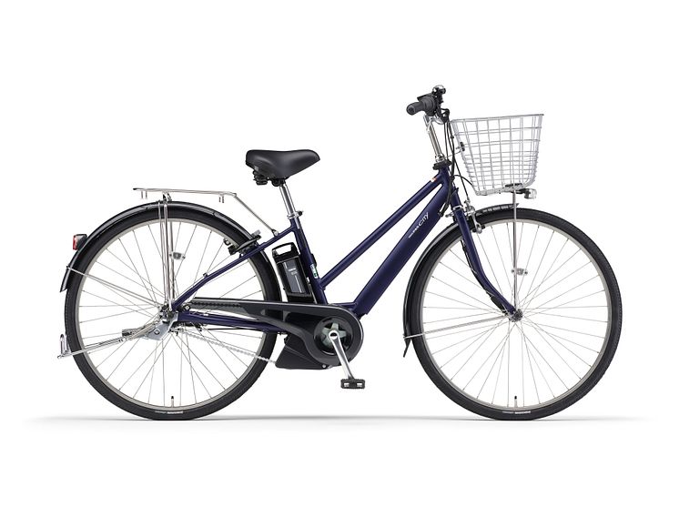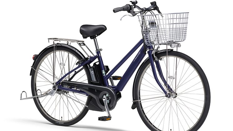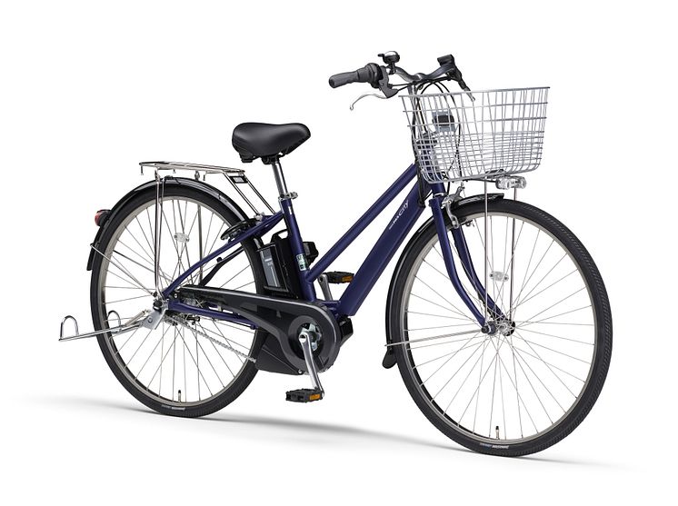 「PAS CITY-SP5」は、長距離走行や荷物の多い通学・通勤シーンに使いやすく便利な機能が充実したモデルです。主な特徴は、1)「スマートパワーアシスト」の搭載に加え、27型タイヤと内装5段変速、15.4Ahリチウムイオンバッテリー採用などによる快適な走行性能、2)大型バスケット(約25L)、ステンレス製リヤキャリヤ、両足スタンドなどの実用装備、3)直線的でスポーティな印象を与えるフレーム形状(スタッガードフレーム)などです。2021年モデルのカラーリングは、よりプレミアムな印象を与える「マットネイビー」を新たに設定しました(全3色)。また、通学・通勤シーンで便利なワイヤー錠も付属します。