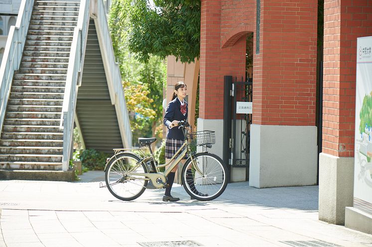 「PAS RIN」は、アクティブな高校生の通学シーンをイメージし、スポーティでユニセックスなデザイン・カラーを取り入れたファッショナブルなモデルです。ストレート基調のフレームや長距離通学でも楽に乗れることを意識した乗車ポジションの設計、大容量15.4Ahリチウムイオンバッテリーなどを採用し、デザイン性と使いやすさを両立させています。2021年モデルのカラーリングは、ユニセックスでスタイリッシュな「マットアンバー2」「マットブラック」を新たに設定しました。また、通学・通勤などで便利なワイヤー錠も付属します。