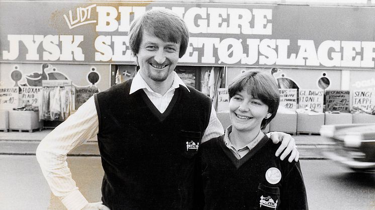 • JYSK owner Lars Larsen with his wife Kristine Brunsborg at the opening of the first JYSK store in 1979