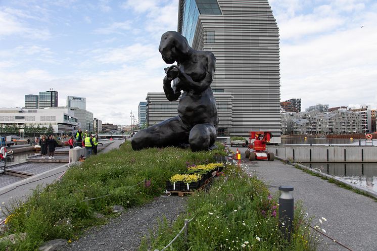 The Mother has found her place in the flower meadow in front of the MUNCH museum.