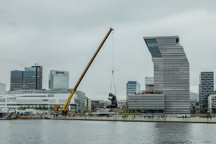The Mother has found her place in the flower meadow in front of the MUNCH museum.