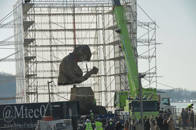 March 2022. First time the 9 meters tall bronze sculpture are assembled into one piece, at Suger cube in Oslo.