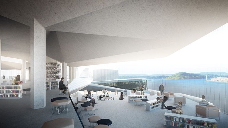 On the 5th floor you can read and at the same time enjoy the view over the Oslo Fjord. - Illustration
