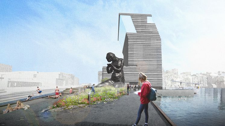 The Mother will be kneeling under the towering structure of the new Munch Museum, a nude, vulnerable woman will face the fjord. The sculpture acts as a stand-in for Munch's own mother, who died of tuberculosis when he was five years old, she welcomes all visitors to the area, protecting the heritage of Munch in its new home. As the artist wrote in her statement for the competition, “The Mother sits like a Sphinx, waiting for the tide. Looking out to sea – protecting the home of Munch. She is welcoming all of nature. She is the companion of the Ghost of Munch”