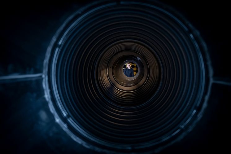 The measurement duct in Lindab's sound lab is 30 metres long and enables low end reflection and more precise measurements at low frequencies.