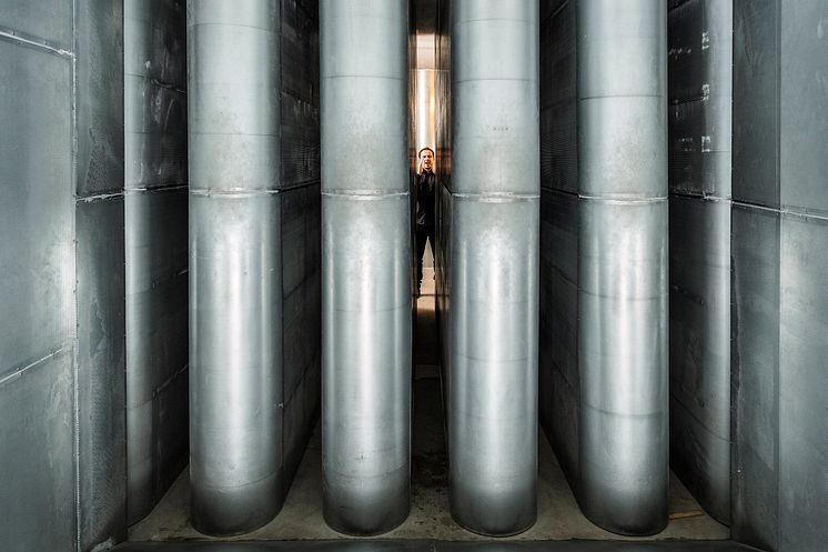 The sound of silence. The sound-absorbing baffle in the basement under the lab ensures that the air stream in the measurement duct is completely silent.