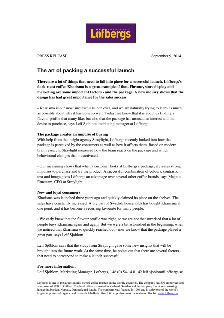 There are a lot of things that need to fall into place for a successful launch. Löfbergs's dark-roast coffee Kharisma is a great example of that. Flavour, store display and marketing are some important factors - and the package. A new inquiry shows that the design has had great importance for the sales success.