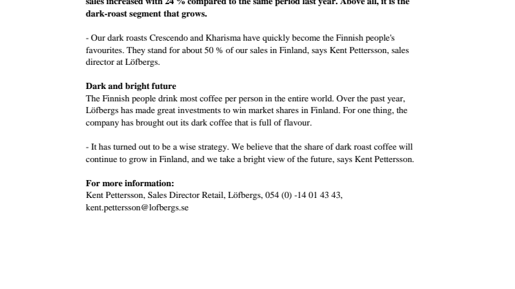 - It has turned out to be a wise strategy. We believe that the share of dark roast coffee will continue to grow in Finland, and we take a bright view of the future, says Kent Pettersson.