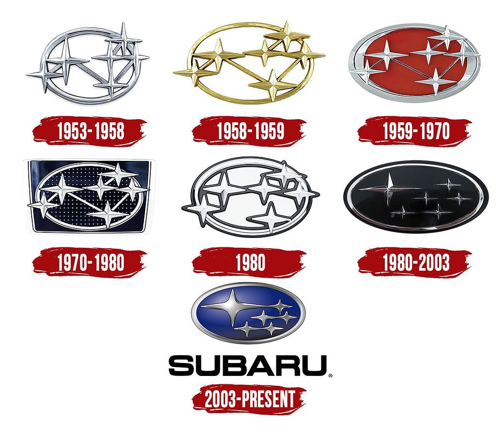 Žodis „Subaru“ japonų kalboje reiškia Plejadžių žvaigždyną. Šešios logotipo žvaigždės simbolizuoja šešias bendroves, susijungusias į Fuji Heavy Industries – Subaru motininę įmonę. Didžiausia žvaigždė reiškia pagrindinę bendrovę, o penkios mažesnės – ją papildžiusias įmones. Per septynis dešimtmečius logotipas keitėsi daugybę kartų: