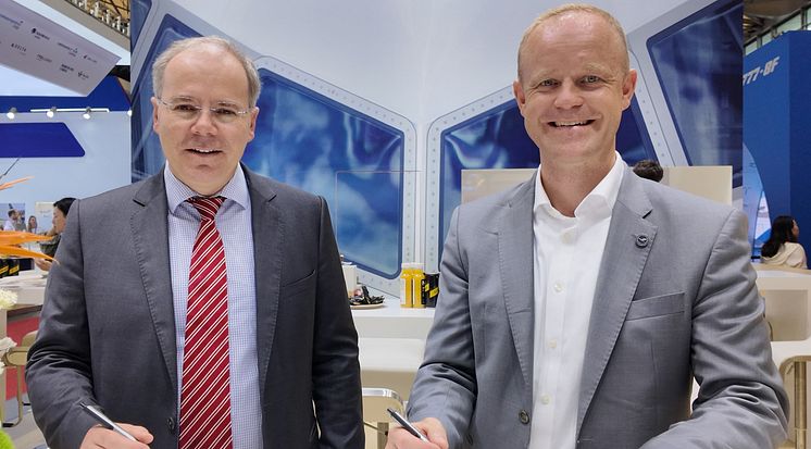 Ken de Witt Hamer, CEO of WorldACD Market Data, and Frank Bauer, Lufthansa Cargo Chief Financial Officer and Labor Director, during the contract signing in Shanghai