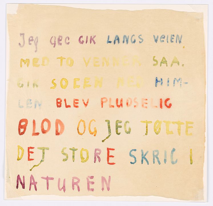Edvard Munch: Håndskrevet tekst. "Jeg gik langs veien med to venner" (Ca 1930)