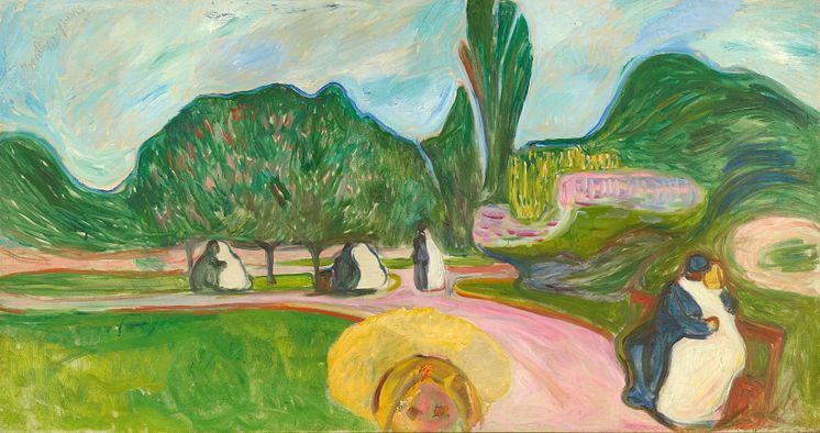 Edvard Munch: Kyssende par i parken / Kissing Couples in the Park 1904 Olje på lerret / Oil on canvas Exhibition: Uendelig / Infinite Munchmuseet