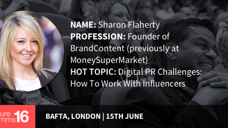 At FutureComms16 on 15th June, Sharon Flaherty, the Founder of BrandContent and former Head of PR and Social at MoneySuperMarket.com will be lifting the lid on how vloggers and bloggers want to work with brands.