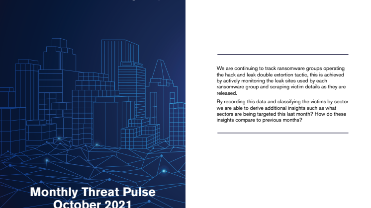The latest threat pulse from cyber security experts NCC Group has identified 314 double-extortion ransomware victims around the world, a 65% increase on September’s victims.