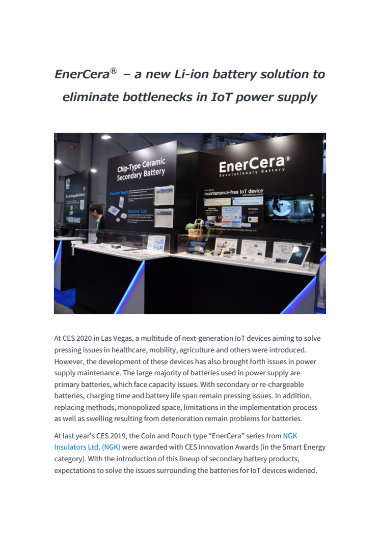 EnerCera – a new Li-ion battery solution to eliminate bottlenecks in IoT power supply